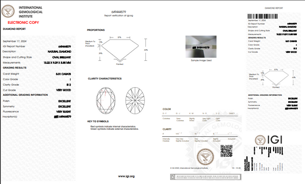 5.01 CT IGI Oval Brilliant Natural Diamond I SI2