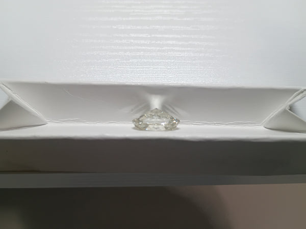 White I color oval with a lively face-up, elongated outline, and strong presence.