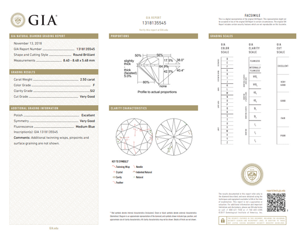 GIA 2.50 CT Natural Round Brilliant F SI2