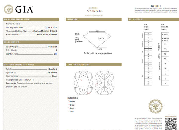 1.02 CT Natural cushion diamond I, SI1